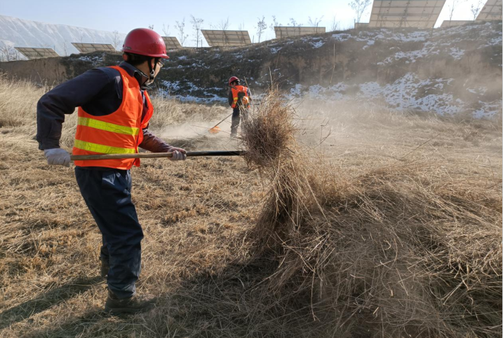 为进一步保障电站安全运营环境,从源头消除火灾隐患,11月1日—12月28日,临洮电站开展了为期五十八天的光伏区杂草治理工作,全面清除光伏区周边杂草一百二十余万平方米、修剪树木千余棵。